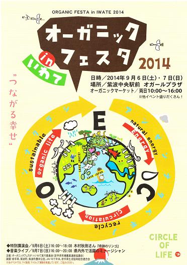 有機自然農業者・エコ衣食住提案者・グリーン消費者の緩やかなネットワークにより、「オーガニックフェスタinいわて2014」を開催いたします。